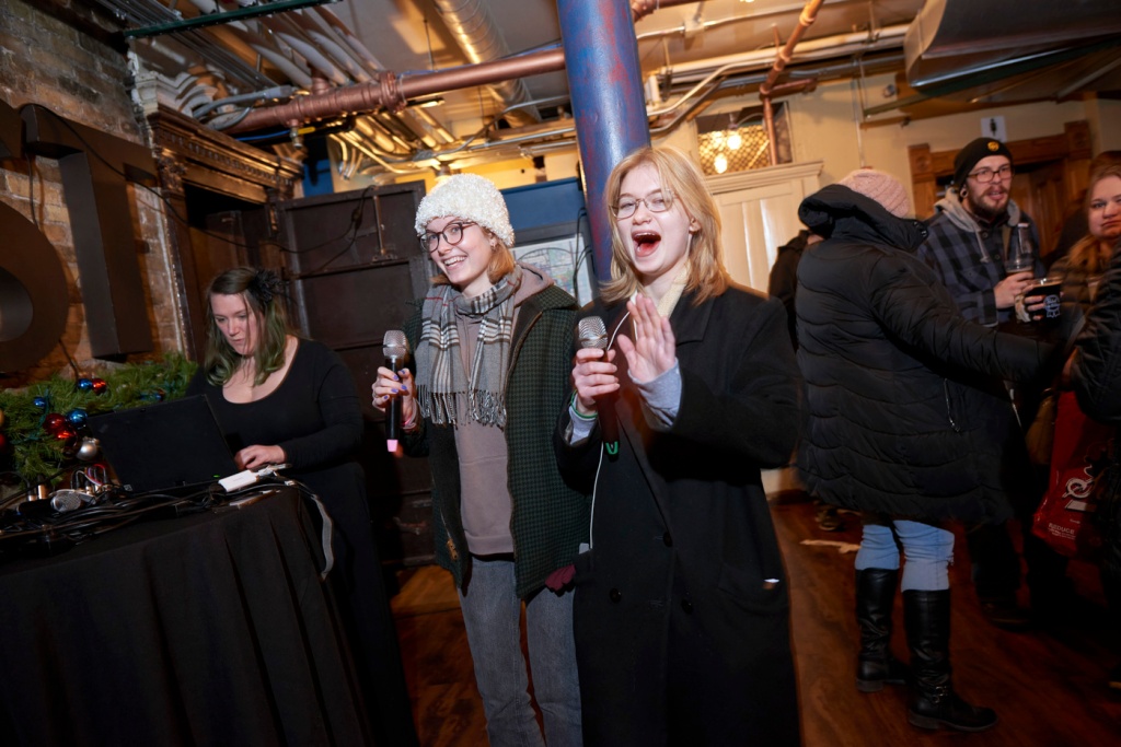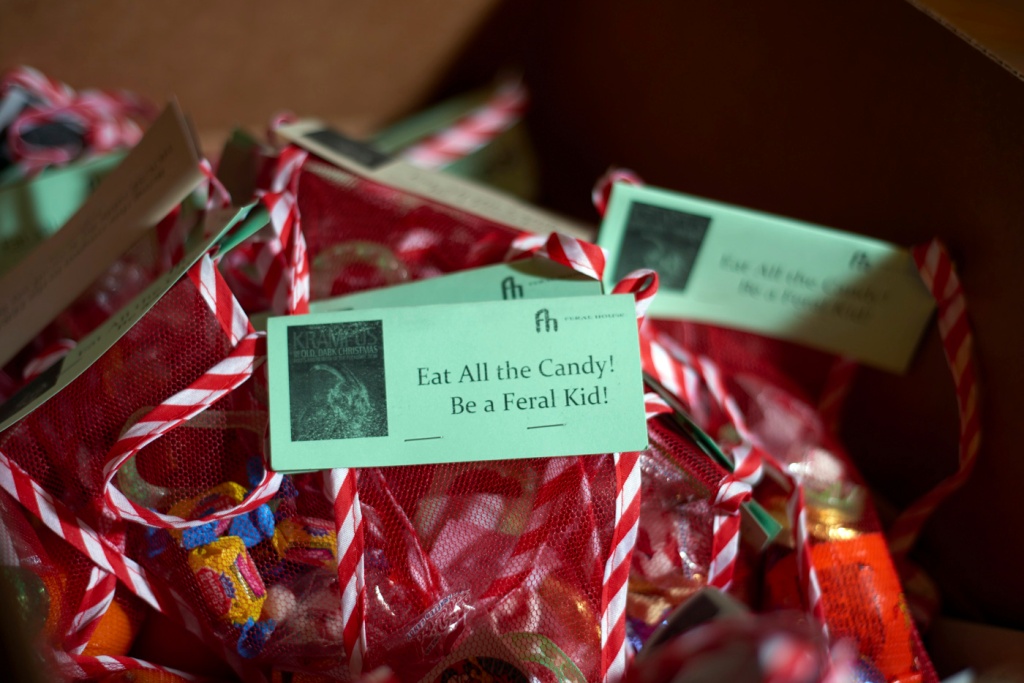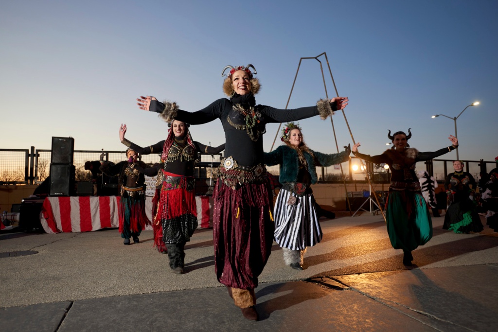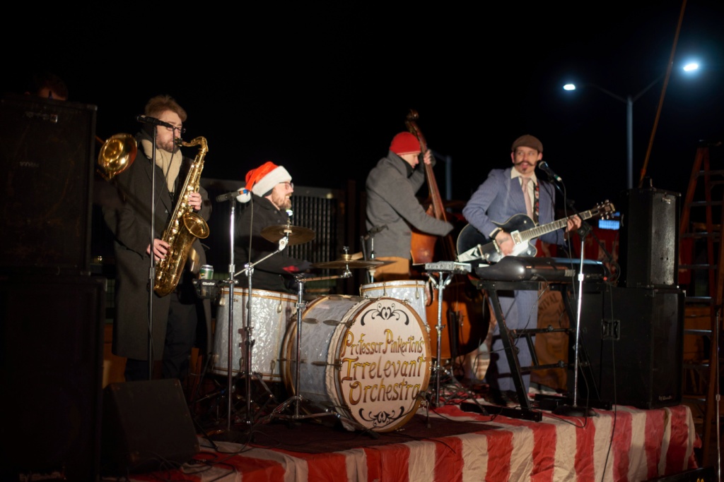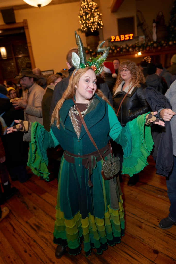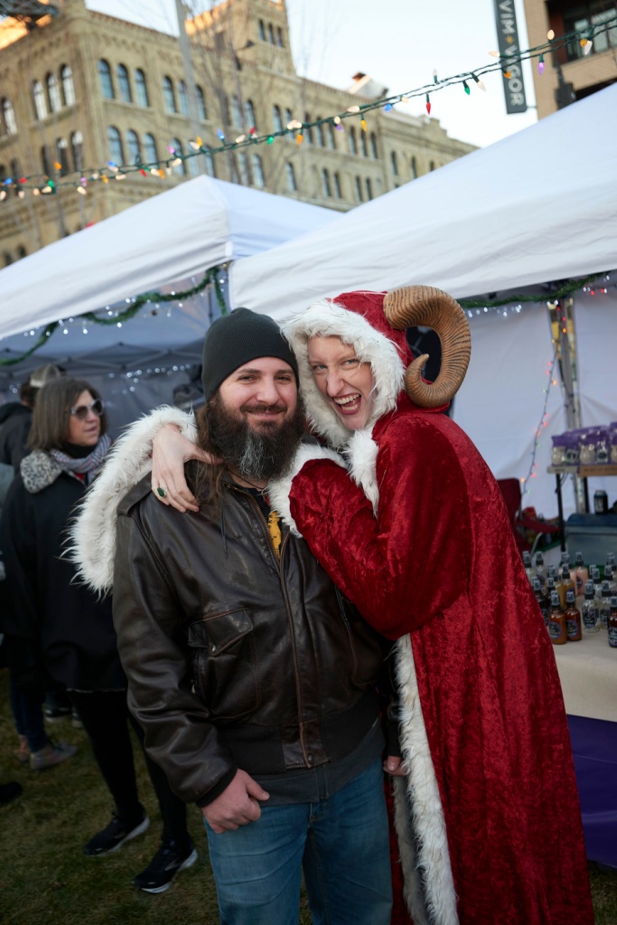 Onkel Belsnickel’s Party Patio was located behind On Tap. It featured DJs Wendy and Ryan and Krampus and Hodag themed cornhole games. Hip hop artist Puerto Wiccan gave a guest performance on the party patio. She had a couple Mari Lwyd back-up dancers. Mari Lwyd is from a Welsh tradition. On Christmas Eve, Mari Lwyd parties go door to door essentially trying to rap battle their way in for treats. See Atlas Obscura article here: https://www.atlasobscura.com/articles/mari-lwyd-wales-horse-skull-holidaysPuerto Wiccan perfomring her song “Devil Horns.”