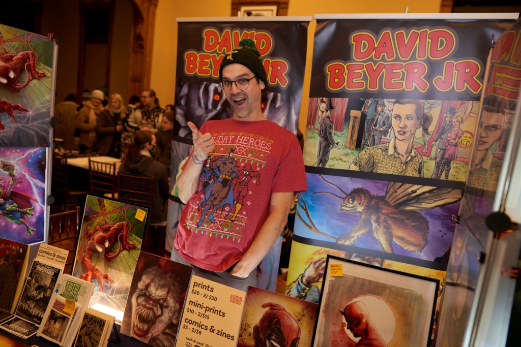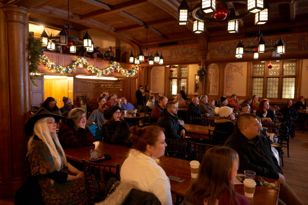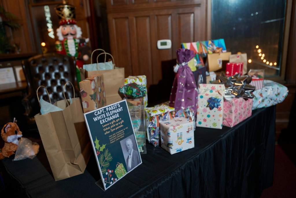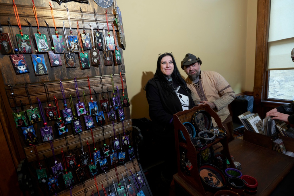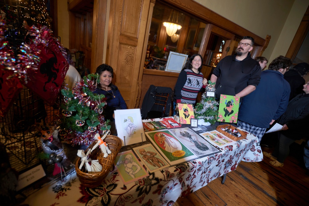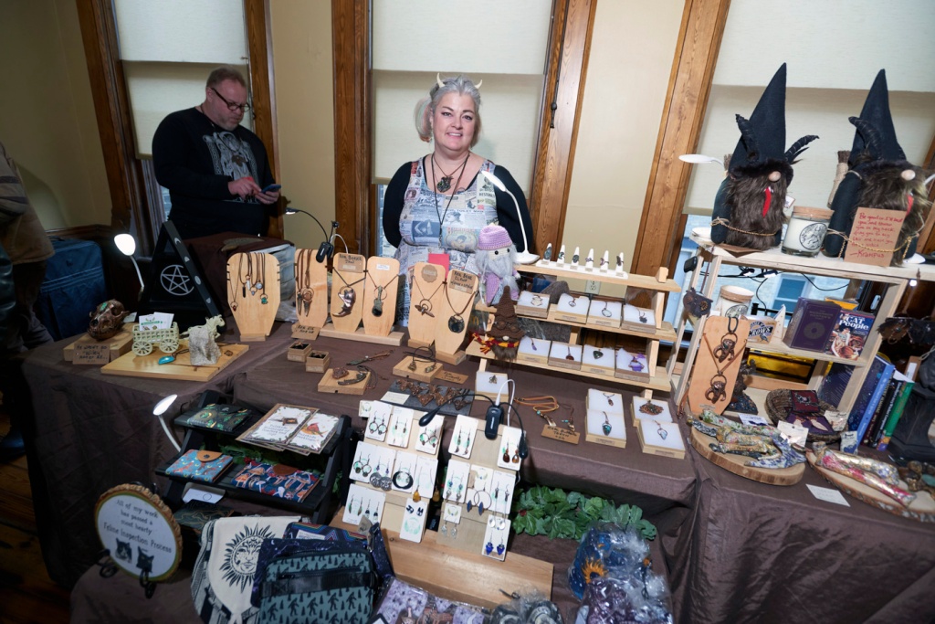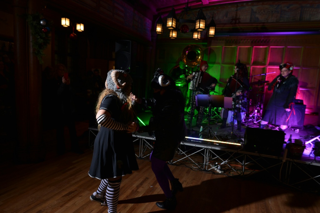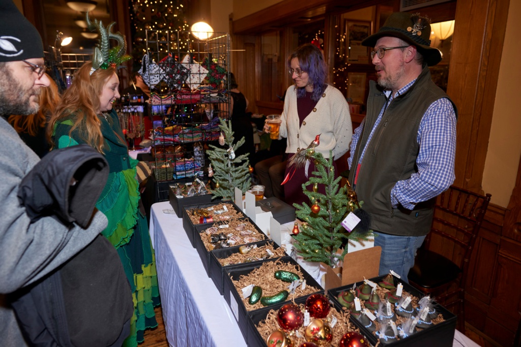 Outside the Great HallInside the Great HallEvent sponsor American Science & Surplus, our favorite store!Krampusnacht attendeesEvent sponsors Feral House, publishers of “The Krampus” by Al Ridenour, among many other fine books.Stinky Goblin Emporium. They are the ones who create our badass art every year for our T-shirts and other merch. Krampusnacht attendeeVendor Momento MoiraVendor Beyer BewareKrampusnacht attendeeEvent sponsor Hellfire Hot Sauce. Were you brave enough to sample?One of our traditions is a white elephant exchange. This year it was set up in Capt. Pabst’s former office. Some say Capt. Pabst’s ghost still wanders the building. This year we also set up a memorial to some participants and friends of the event who have passed on– Scott Wolter, Curtis Meyer aka Deadgar Winter, Linda Godfrey, and Louis Dubrosky. Thank you to Estephanie Mendoza for setting this up. Speaking of, here’s the table for Mendoza Illustrations . Vendor Pieces of Jayde: Uncommon Goods, who traveled up from Indiana.Krampusnacht attendeeCrone Moon, who also led a wonderful “Make Your Own Krampus Card” workshop. Krampusnacht performer/attendeeVendor Gebhardt Trading CompanyNext door to the Great Hall– the Best Place Gift Shop.