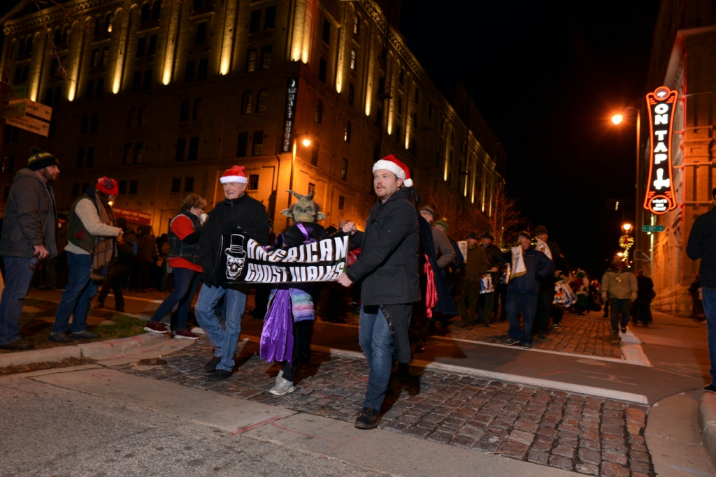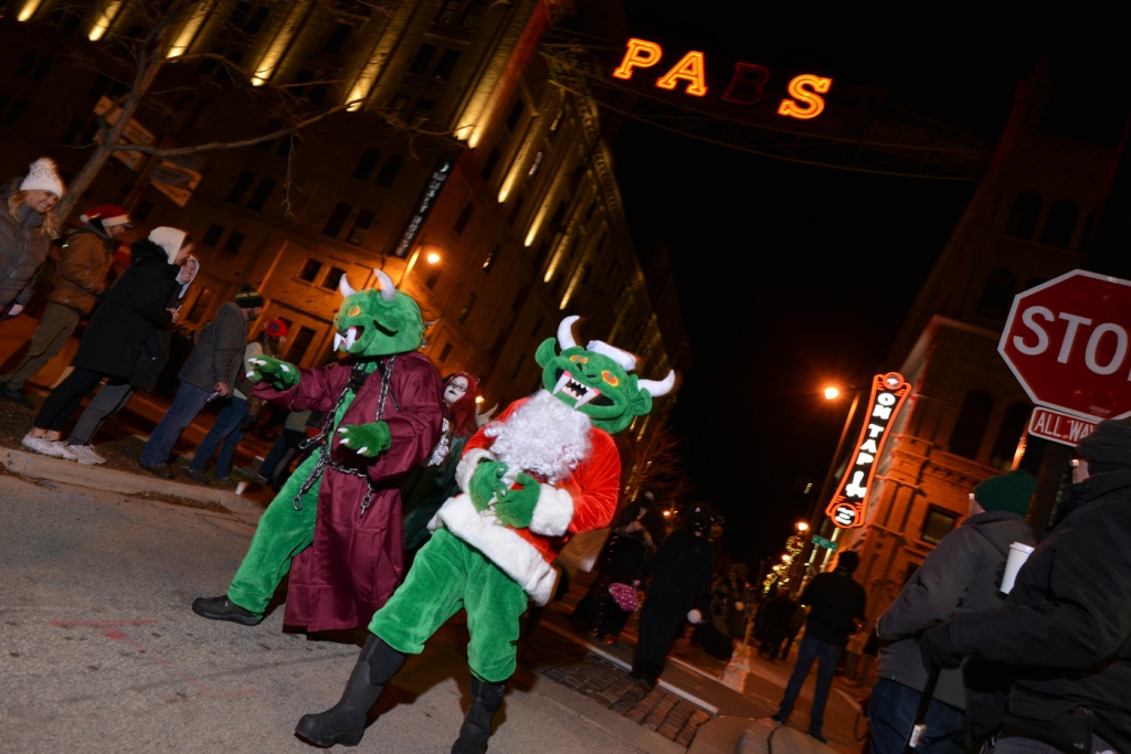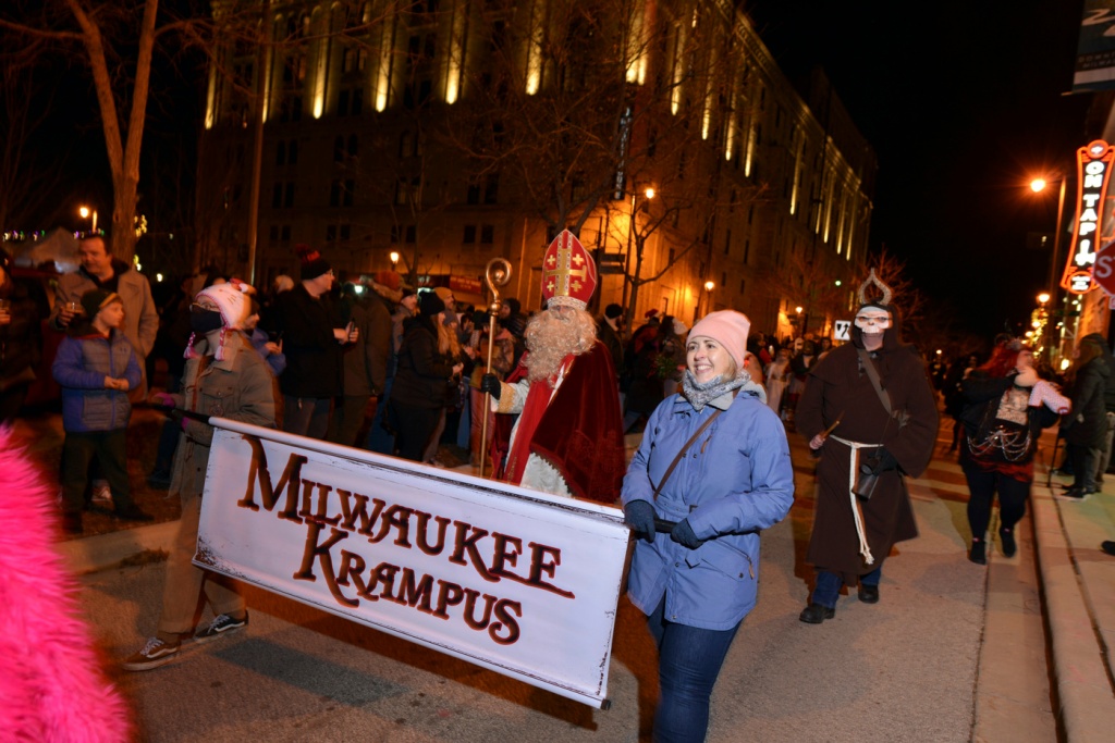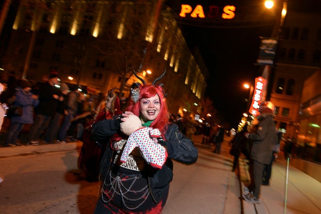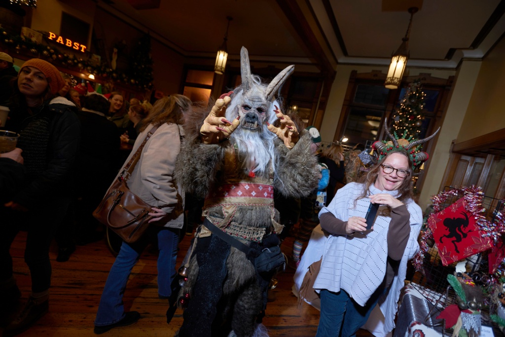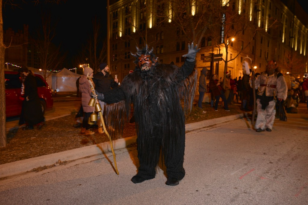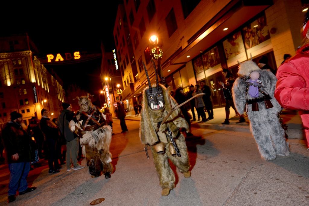 Members of Milwaukee Krampus Eigenheit and Witches in Motion join forces!Krampus stomping ground!Krampusnacht attendeesKrampus whips people into shape by the Trouble Makers Cocina food truck.Krampus on 10th and Juneau.Krampusnacht attendees Krampusnacht performers near Krampus Market SquareWend O’ Lynn played two beautiful sets of traditional Irish music on the stage in the King’s Courtyard at Best Place. Zombie Puppet Carolers!Chillin’ with KrampusKrampusnacht attendeesCaroling group Riverwest Revelers stopped by to sing! Lookin’ snazzy!Hangin out by the Best Place Cafe.Krampus catches another victim!Road block!Looks like trouble!