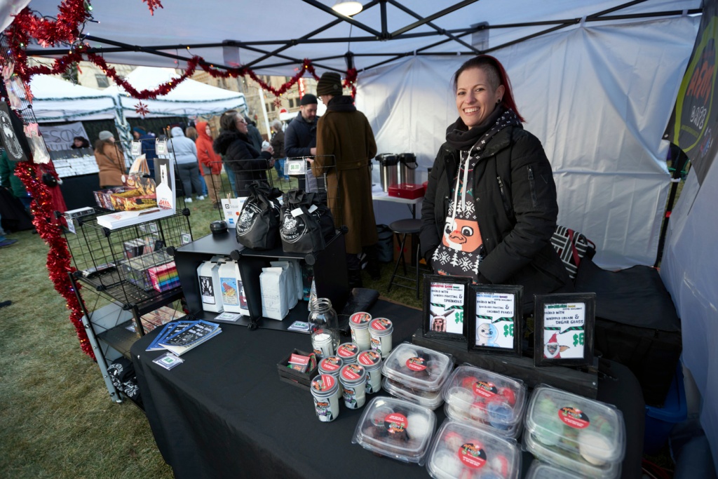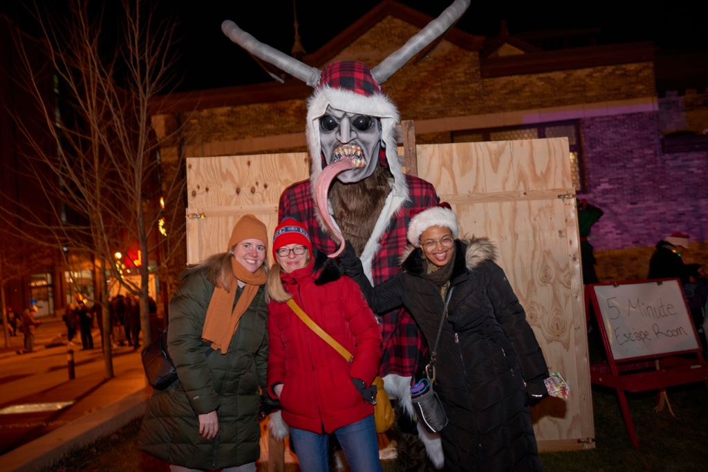 Supporting Sponsor Besom Boutique’s tents in the Krampus Market Square. Besom Boutique helped organize the market. Photo opp and escape rooms set up by Unorthodox Entertainment Company
