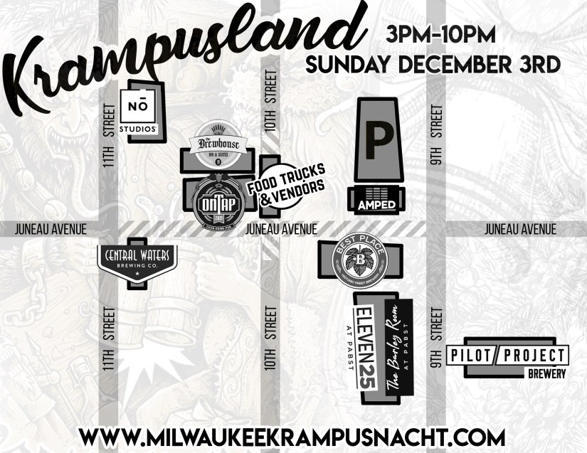 Food/Drink We worked hard this year to get adequate food options. You can find food/drink at Best Place, Pilot Project, Barley Room, Amped, and On Tap. No Studio’s cafe/ bar is also open and we have a few food trucks out on 10th St, so bring an appetite! Lots of great drink specials throughout and Pilot Project is selling six-packs of a special Biere de Krampus they made for us! See details on food/drink options here: Cheers! Food and Drink – Milwaukee Krampusnacht 2023: Sunday Dec. 3!