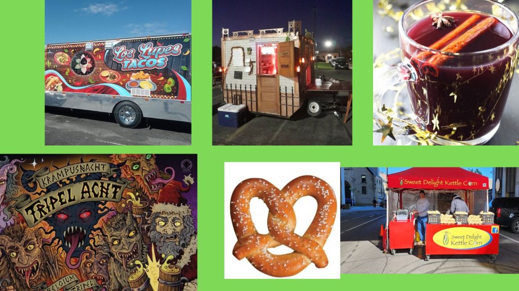 Hot chocolate! Glühwein! Pretzels! Shawarma! Burgers and Brats! Nachos! Tacos! Vegan donuts! Kettle Corn! Marshmallows! S’mores! Krampusnacht Tripel Acht! Eggnog! Fire and Brimstone Hot Cider! And much much more– food and drink will be available throughout the Brewery District at several locations, so bring your appetite. Here’s a guide to the monster good Krampusland tastes.